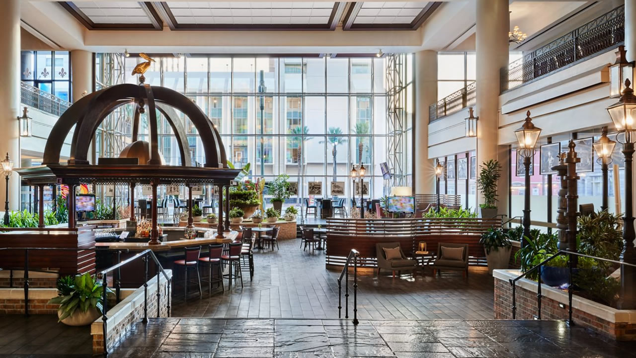 The hotel amenities include a rooftop pool, a fully equipped 24-hour fitness center, on-site dining at Roux Bistro and Pelican Bar, and a Starbucks café. The exclusive Concierge Lounge on the 42nd floor offers guests breathtaking views and premium services. The Sheraton is pet-friendly and offers valet parking and modern comforts designed for both business and leisure travelers, making it a premier choice for convention attendees.