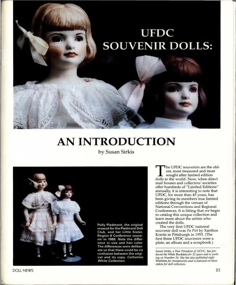 The United Federation of Doll Clubs (UFDC) is a non-profit organization with the goal of being the foremost in research, education, conservation, collecting, and appreciation of dolls.